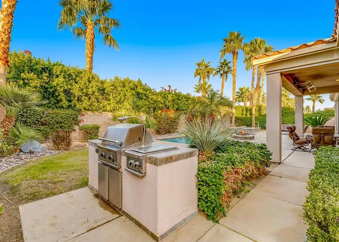 De gesitueerde in La Quinta Rancho Santana Estate Villa La Quinta ligt op rijafstand van 10 minuten van de Shields Date Garden en beschikt over een bubbelbad, evenals een kuursalon waar gasten kunnen ontspannen. Deze 4-badkamer villa heeft een terras en ligt binnen 2 km van Eldorado Polo Club.